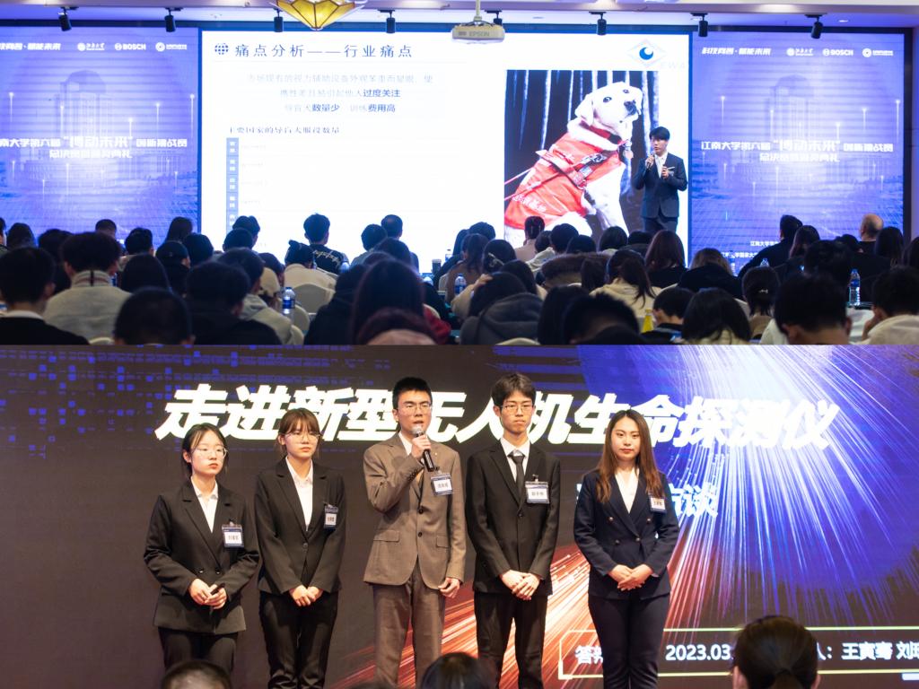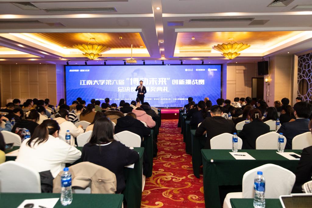 3月22日,江南大学第六届“博动未来”创新挑战赛总决赛暨颁奖典礼在长广溪宾馆太湖厅圆满落幕。博世动力总成有限公司新业务发展部总监冯琦峰、创新平台经理金鑫、博世工业4.0高级经理崔清、博世工程体系专家HUG Juergen,江南大学教务处副处长吴宝锁、团委副书记杨飏、学生工作部(处)创新创业服务科科长杨宏华,Bet365国内网址