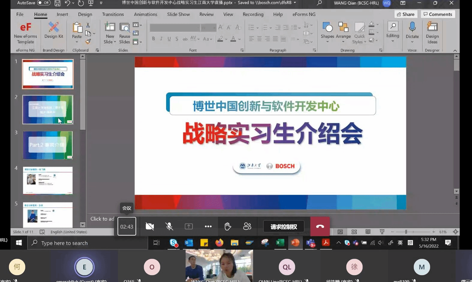随后,博世中国创新与软件开发中心HR介绍了公司的基本情况,并围绕公司的发展历程、经营布局、创新研发、员工职业发展、薪酬福利等方面做了详细阐述。作为博世在中国本土的创新与软件研发总部,中心业务覆盖自动驾驶、智能驾舱、汽车电动化、燃料电池系统、智能网联汽车,涉及人工智能、大数据、嵌入式软件、云/物联网解决方案等前沿技术领域,成立两周年已进入快速发展阶段,亟需大批优秀人才加盟。希望通过此次活动吸引更多江南学子来博世实习就业,为企业注入创新力量。直播还特别邀请博世高级软件开发工程师段飞腾、吴玥等江南大学校友,以自身实际经历介绍在博世工作的体悟,为同学们提出就业建议,鼓励同学们积极应聘本次战略实习生岗位。