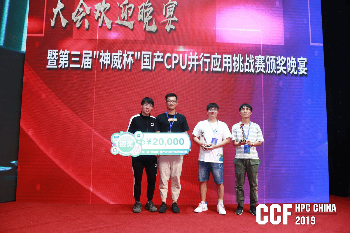 及纺织服装学院研究生袁鸣、刘旭、陈宏博、李文组成的“太湖神鼋”队荣获银奖;由计算机科学与技术等专业本科生叶钧超、赵海旭、孙瑞鑫组成的“江大TEAM”队荣获铜奖。两只获奖队伍均由江南大学超级计算俱乐部组织及培训。江南大学超级计算俱乐部由柴志雷老师创建于2018年10月,目标是通过培训及大赛培养学生的并行编程能力。