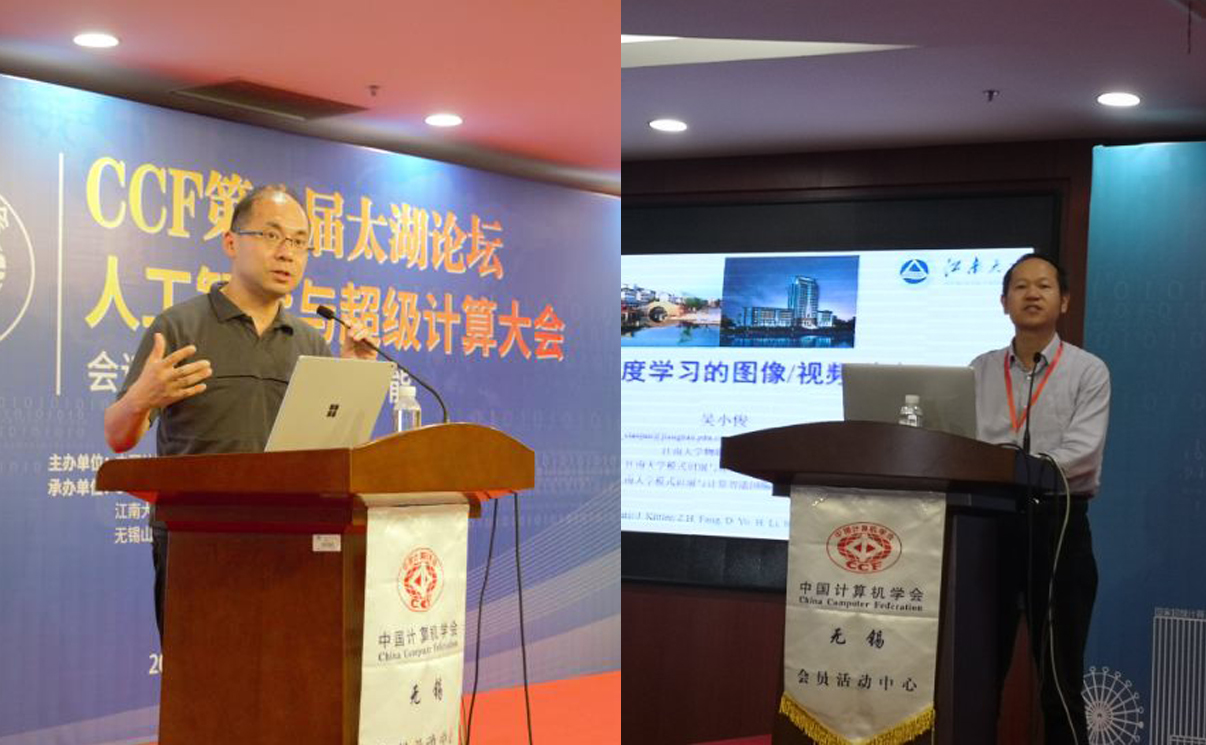 吴小俊教授代表承办单位致欢迎辞。会上,CCF体系结构专委会主任、国防科技大学窦勇教授,国家超级计算无锡中心副主任、清华大学付昊桓教授,日本理化学研究所研究员、日本Kobe大学牧野淳一郎教授,阿里云基础产业事业部贺荣徽博士,驭势(南京)人工智能研究院首席科学家宾夕法尼亚大学Jianbo Shi教授,江苏省人工智能学会副理事长、江南大学吴小俊教授,北京大学信息技术高等研究院副院长王韬副教授,中科院自动化研究所顾庆毅研究员等专家分别做了精彩的报告。几位专家分别从超级计算异构体系结构、超算平台对深度学习的支持、云超算、自动驾驶中的智能识别、深度学习应用、情感机器人计算与高速视觉处理等方面,介绍了人工智能对计算的需求以及计算系统对人工智能的支持,探讨了算法与系统融合的重要趋势。