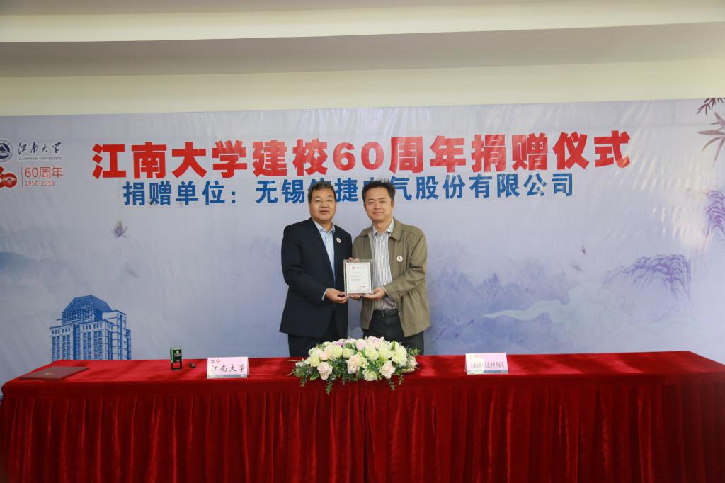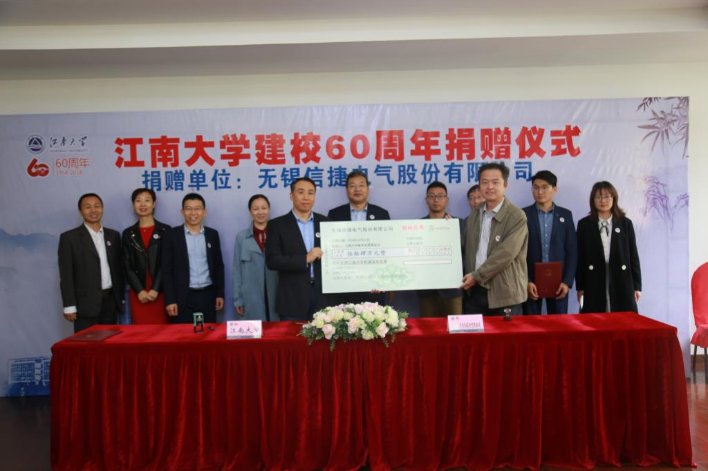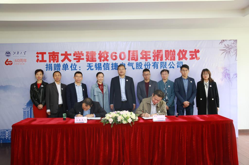 的大力支持。服务型制造是当今世界制造业发展的新趋势,信捷电气希望与江南大学深度合作,提升核心竞争力。此次捐赠是企业对江南大学建校60周年的美好祝愿,希望校企双方携手并进,同创辉煌。