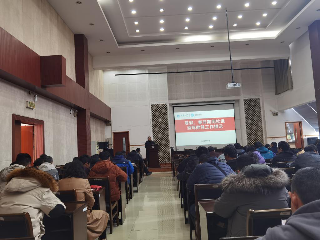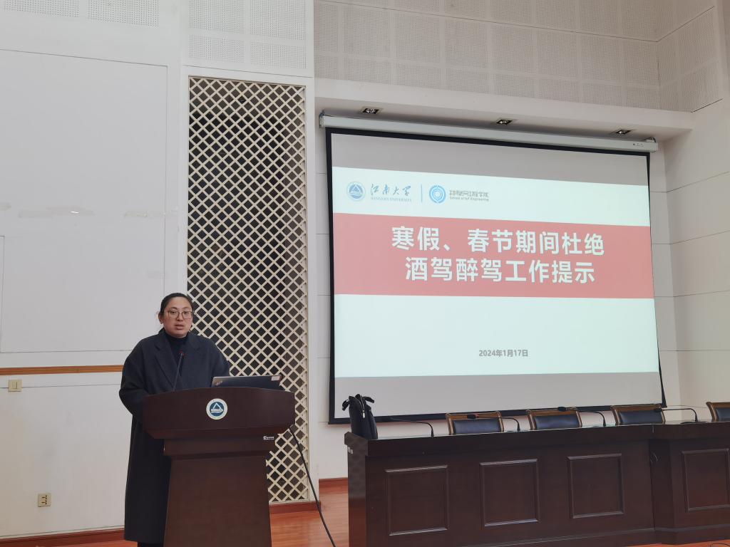 孔丽丹在会上进一步强调了寒假学生安全教育管理重点。作为学院党委纪检委员,孔书记随后就寒假、春节期间杜绝酒驾醉驾作专题报告,要求各基层党支部压实全面从严治党主体责任,加强对党员干部、教职员工的日常教育和监督管理,进一步强化“八小时外”的监督管理,及时提醒、及时纠偏;全体教职工要充分认识酒驾醉驾的严重危害,消除侥幸心理,坚守纪律“底线”,严守法律“红线”,恪守自律“高线”,做新时代立德树人的积极践行者,模范遵守国家法律法规。