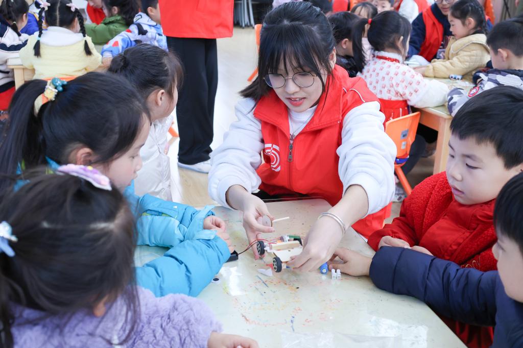 志愿者指导小朋友操作(一)