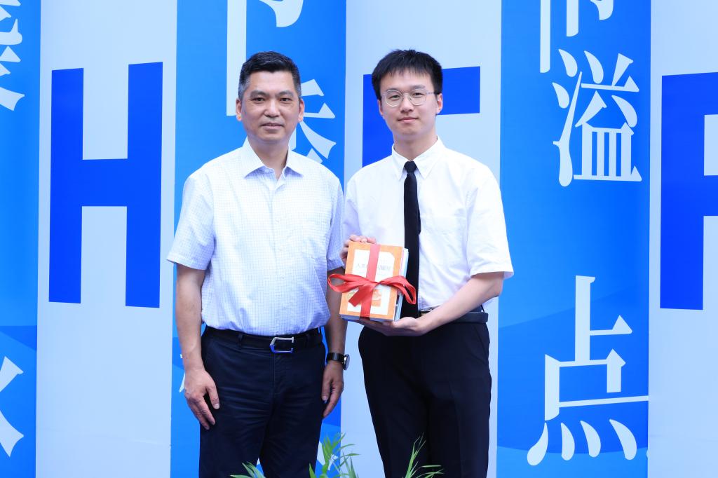 随后,领导嘉宾为毕业生代表颁发捐赠证书。孟非作为毕业生代表发言,他表示本次活动和学校研究生支教团支教学校(新疆和田地区于田县第二高级中学)联动,所得名著小说等将捐赠给该校,为青少年学子提供宝贵阅读资源,而自己作为第26届支教团成员 ,将继续架起成长的桥梁,奋力展现青春作为、彰显青春风采、贡献青春力量。赠书仪式上,张华为支教学生代表孟非送上募捐所得图书。最后,一首毕业主题歌曲《一程山路》将此次开幕仪式推向高潮。