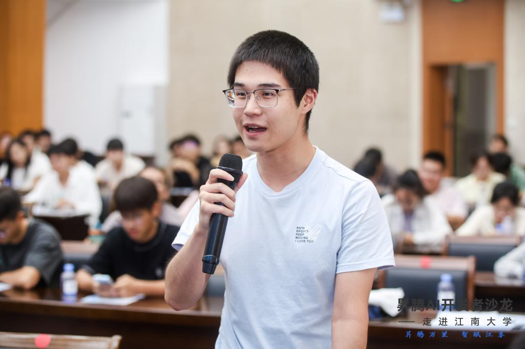 在互动环节同学们踊跃发言,并就感兴趣的话题进行了深入的探讨。通过这种面对面的交流,同学们不仅对国产化AI生态体系有了更深入的了解,同时也获得了宝贵的指导建议。