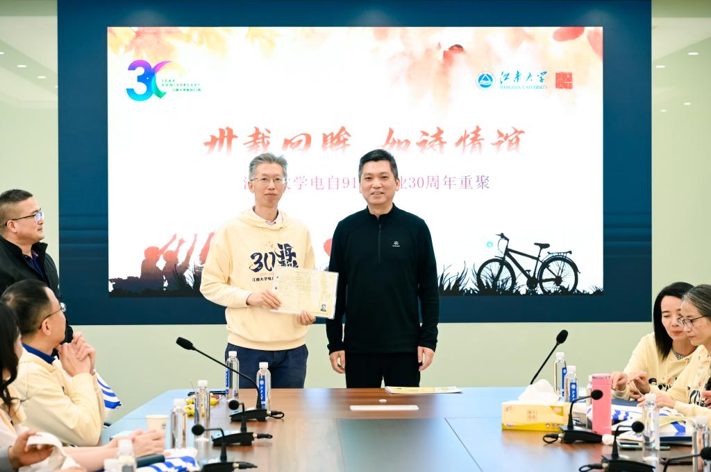 党委书记张华,办公室主任付少平热情接待了校友并出席班级毕业30周年班会。