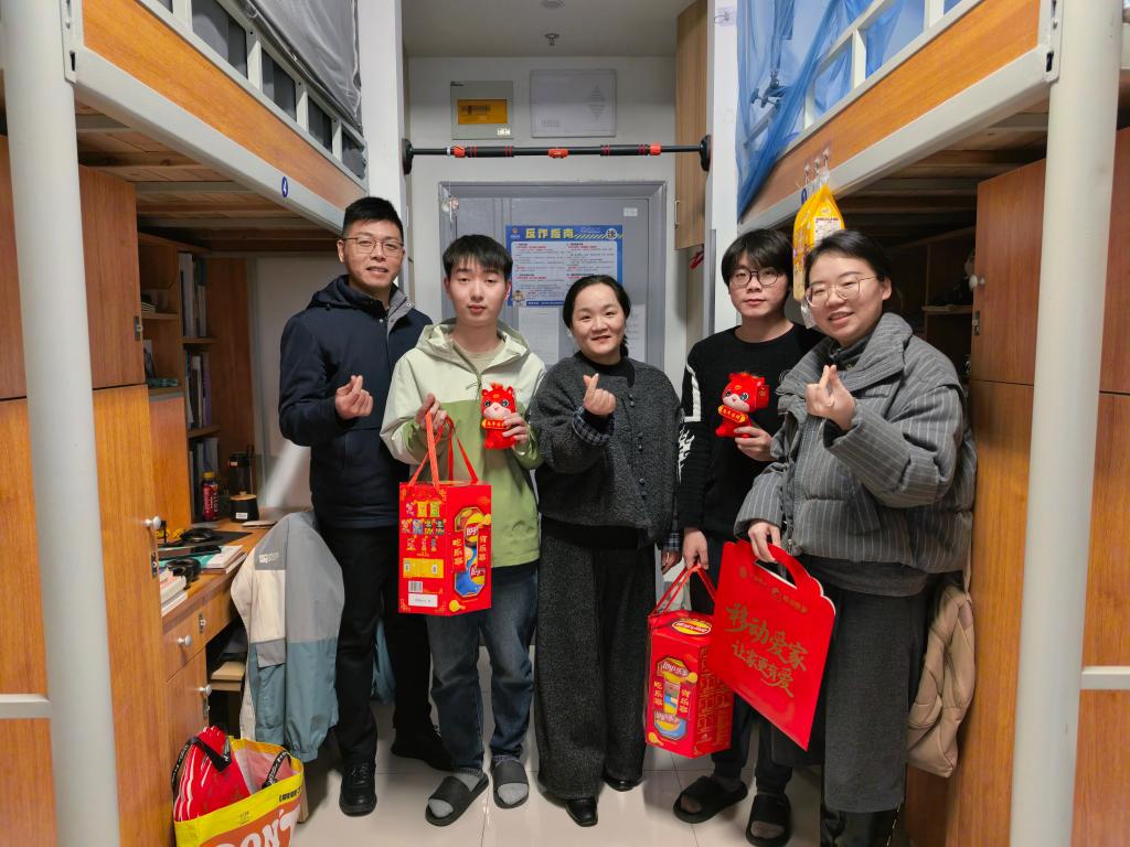 在学生宿舍,师生围坐畅谈,氛围温馨和睦。老师们为留校学生送上精心准备的新春礼包,将学院的牵挂与关怀真切传递给每一位学子,同时细致询问同学们的假期留校规划,反复叮嘱大家严格遵守宿舍用电、防火等安全管理规定,时刻绷紧安全之弦,防范各类安全风险,遇有困难第一时间与辅导员、学院沟通联系,定期与家人保持联络,确保假期在校平安顺利。