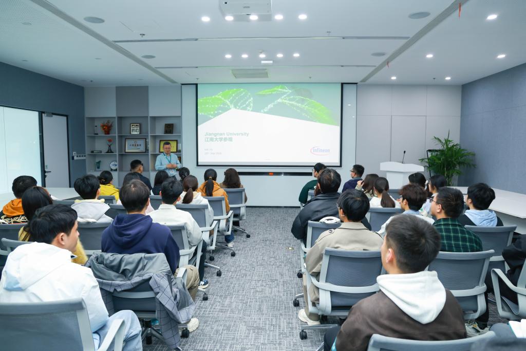 3月25日,江南大学自动化与智能科学学院党委副书记、副院长杨艳,学工办主任兼分团委书记洪筱、辅导员屈跃宽带领40余名青年学子走进英飞凌半导体(无锡)有限公司(以下简称英飞凌),开展“英飞凌卓越工程师训练营”企业开放日暨访企拓岗活动。英飞凌半导体(无锡)有限公司运营部副总裁郁海金、运营部高级总监邱胜华、人力资源部高级经理周敏芳等出席本次活动。