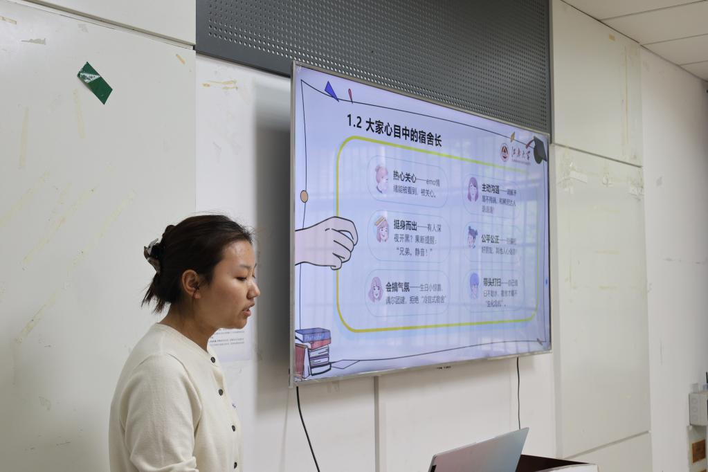 培训中,主持人明确宿舍长“小家长、知心人、安全员”的三重使命:带头维护宿舍秩序、营造温馨氛围,主动倾听室友心声、化解人际矛盾,敏锐觉察异常状态、坚守安全底线。现场以“我的宿舍‘五个最’”开展分组讨论,宿舍长们分享任职心得、交流困惑,凝聚起守护宿舍和谐的共识。