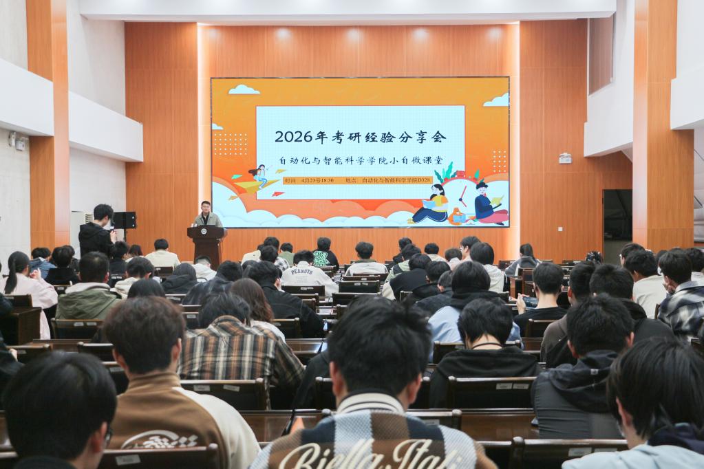 为充分发挥优秀学子的示范引领作用,帮助考研学生明确备考方向、掌握科学方法,4月23日,自动化与智能科学学院(物联网学院)“小自微课堂”品牌活动之考研经验分享会在学院D328报告厅举行。活动邀请学院2026届六位成功考取硕士研究生的优秀学子分享备考心得,各年级本科生到场参与交流。