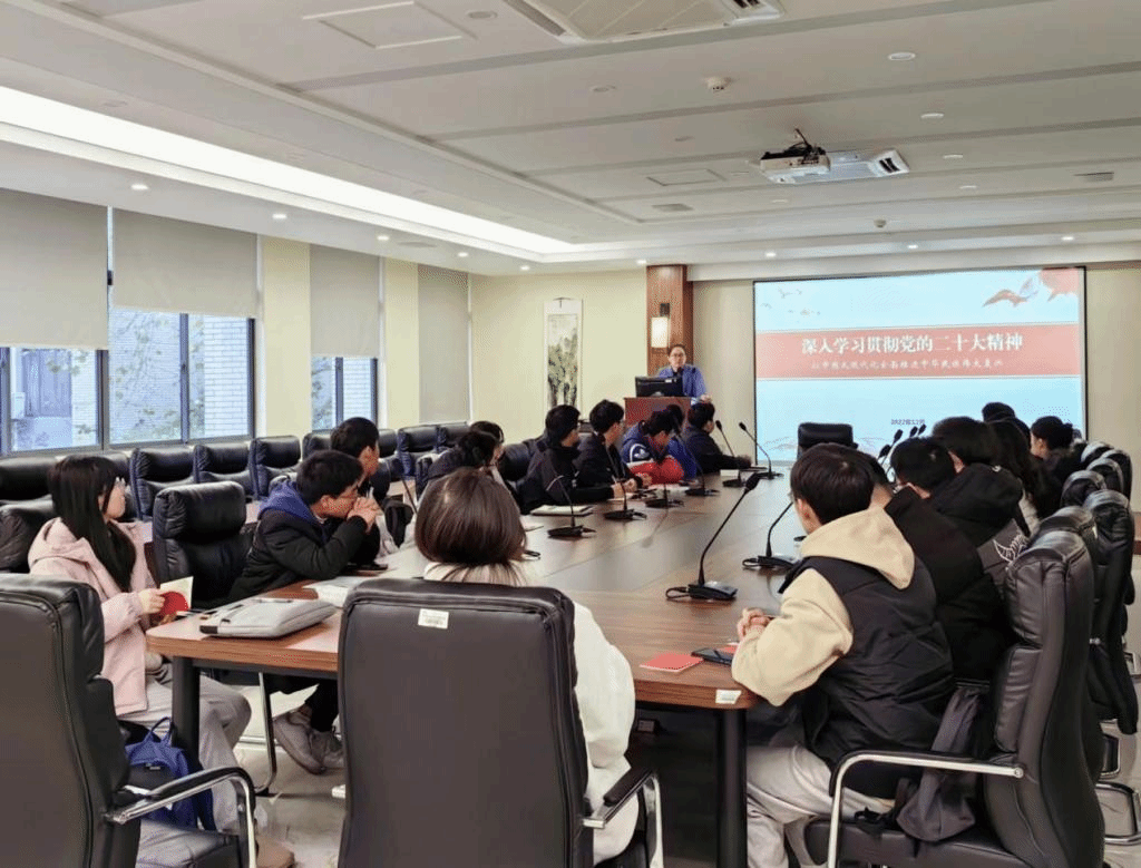 党委副书记、副院长孔丽丹在学院B222会议室为本科生第三党支部全体成员开展了专题党课,带领大家进一步学懂悟透党的二十大精神内涵实质。