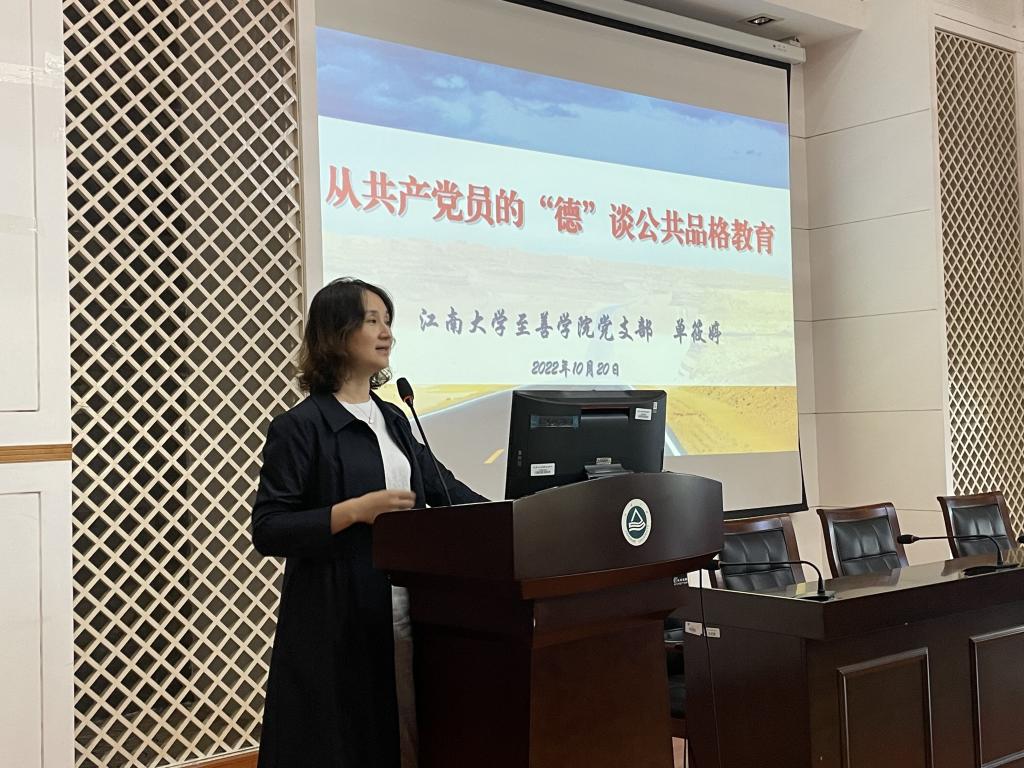 10月20日下午,Bet365国内网址 党委特邀至善学院副院长单筱婷讲授“从共产党员的‘德’谈公共品格教育”主题党课。学院150余名师生在学院D328会议室聆听了本次党课。活动由辅导员李灿主持。