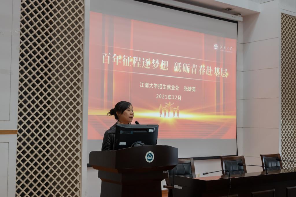 张婕英以丰富的导向基层就业工作经验,向与会同学作了题为“百年征程逐梦想,砥砺青春赴基层”的专题党课。她指出,青年只有把个人前途与祖国命运紧密相联,才能大有作为。她从百年征程与青年使命、基层就业与学子楷模、选调生与招录政策三个方面娓娓道来,结合百年党史中的青年担当、习近平总书记寄语青年的系列回信,强调当代青年要以实现中华民族伟大复兴为己任,增强做中国人的志气、骨气、底气,不负时代,不负韶华,不负党和人民的殷切期望!