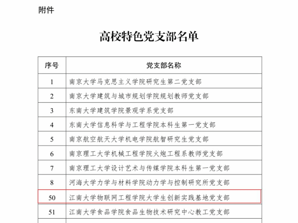 大学生创新实践基地党支部入选江苏高校特色党支部。
