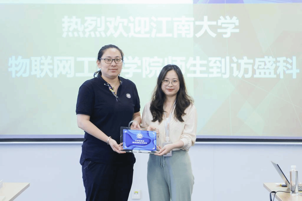 随后,孔丽丹对公司的热情接待表示欢迎,并就学院发展现状和各专业学科人才培养进行介绍。她提到,学院拥有实力雄厚的导师团队,培养的学生务实求真,具备较好的科研创新能力,能够满足企业对人才的需求和期待;希望校企双方进一步拓展合作领域,并向企业发出前往学院举办专场招聘的真挚邀请。最后,孔丽丹为公司授牌“大学生就业最佳战略合作伙伴”。