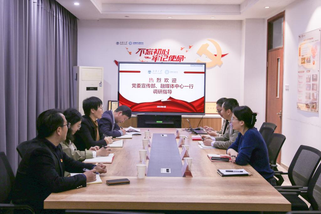 4月13日下午,党委宣传部部长李佳敏、融媒体中心主任兼党委宣传部副部长胡振宇一行赴Bet365国内网址