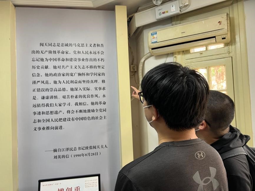 “在党的有生力量岌岌可危的时候,是张闻天带头站了出来,反对左倾主义,支持了毛泽东的正确主张,大部队才得以转危为安”,解说员语至此处,不由赞叹:“真乃挽狂澜于既倒,扶大厦于将倾啊。”支部成员们也深受感染,心潮澎湃久久不能平息。在“外交战线”展厅展柜中陈列的一件大衣吸引了大家的注意,这件大衣是由张闻天的侄子张昌麟提供的,张闻天生前的生活非常简朴,许多衣服都是打补丁的,而这件衣服是他为数不多没有补丁的大衣,所以他非常珍惜,只在重要场合才拿出来穿,当了解到这件大衣背后的故事,支部成员们都无不为之动容。从19岁,张闻天在“五四运动”期间走上街头投身南京学生运动,到76岁病逝前,张闻天满怀初心,为党和国家奉献余热。故居中一件件陈列的实物、一幅幅往昔的图片,无声地诠释着这位革命先烈为共产主义事业奋斗终生、至死不渝的决心和勇气。