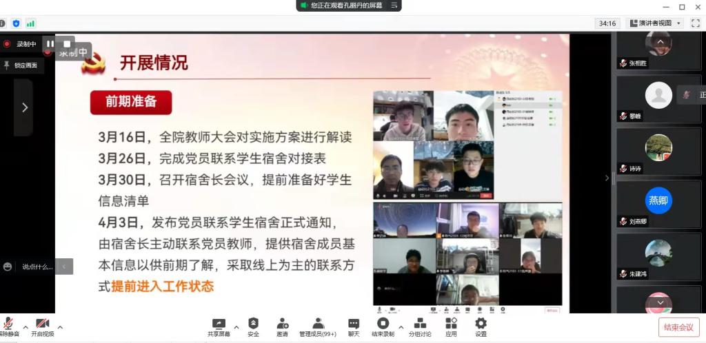 党员教职工联系学生宿舍工作推进会在腾讯会议平台举行,学院党委书记程捷音、副书记孔丽丹主讲,全体党员教师参加会议。