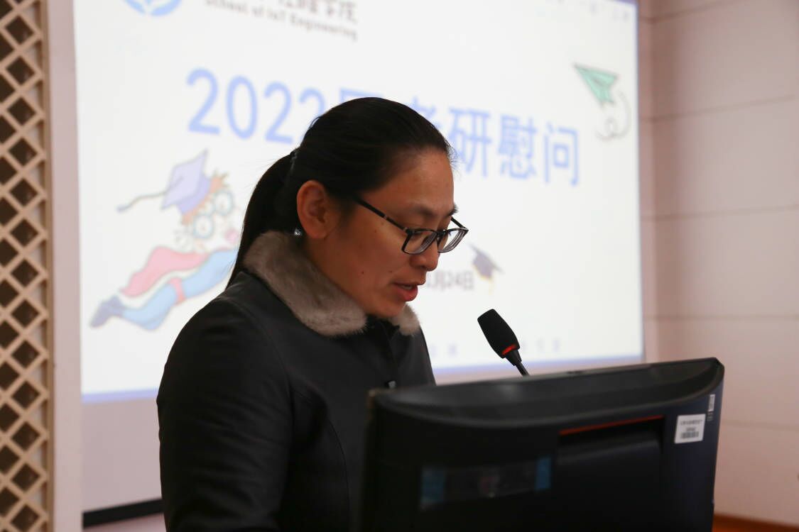 2022届考研慰问解压活动在学院D328举行。学院党委书记程捷音、院长谢林柏、党委副书记孔丽丹,毕业班辅导员、班主任代表,及130余名考研学子共同参加活动。活动由孔丽丹主持。