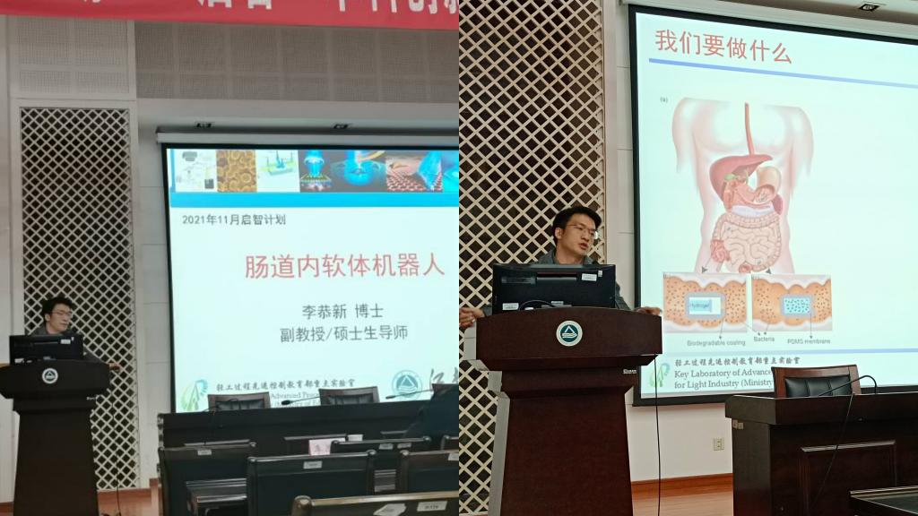 随后,启智导师代表依次围绕各自的研究方向和内容进行精彩的宣讲。南海燕副教授向大家讲述了集成电路的发展历程和摩尔定律的障碍以及未来的发展前景,结合个人的科研经历分享了“漫漫科研征途需要攻坚克难精神”的感想;吴琼副教授以云计算对于无人驾驶的重要意义为切入点,详细介绍个人在无人驾驶和人工智能领域的研究成果;李恭新副教授采用短视频的形式,生动地向大家展示了肠道软体机器人的神通广大;郭瑜副教授结合智能手环等实际案例,详细介绍了光纤传感器在监测人体健康方面的应用。导师们纷纷表达了对2020级本科生走进实验室、参与科研的热切欢迎与期盼。