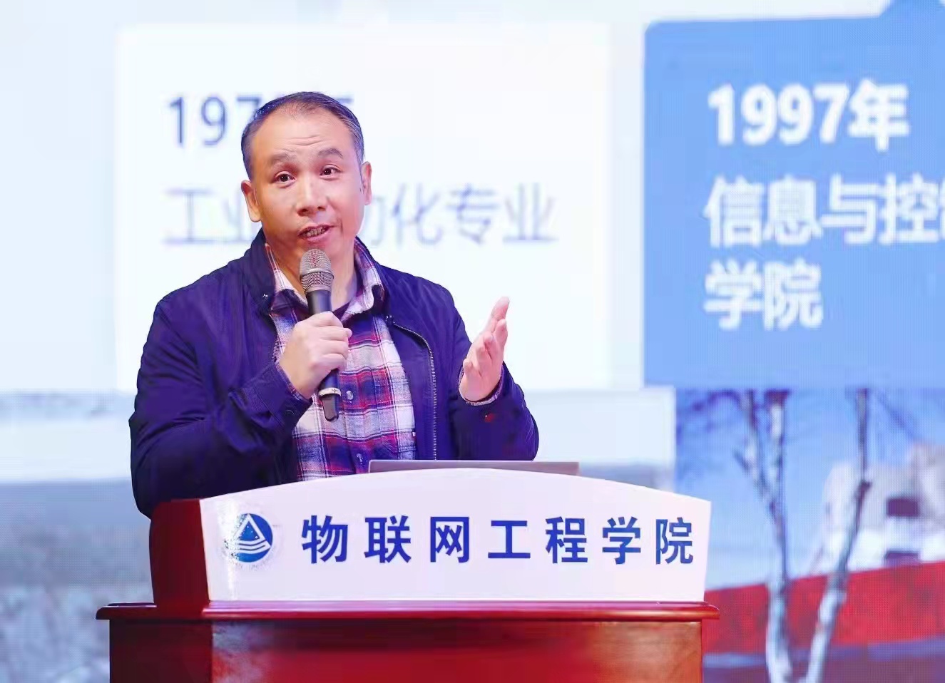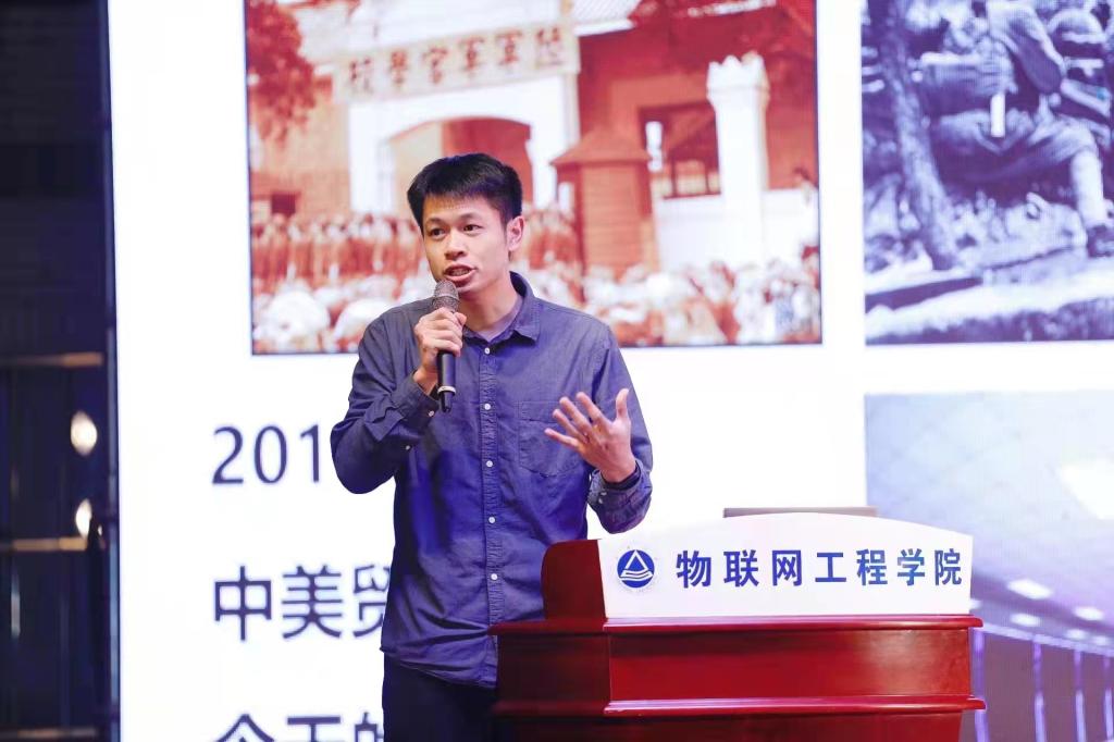 微电子2101班班主任梁峻阁作为江南大学第十七届“我最喜爱的老师”代表发言。他从自己亲身经历说起,讲述《钢铁是怎样炼成的》中生命的意义;引用名句,向全体新生阐明“唯实”院训的三层内涵;通过描述系统定理,教导新生当认真学习文化知识,唤起同学们对修养自身品质的决心。