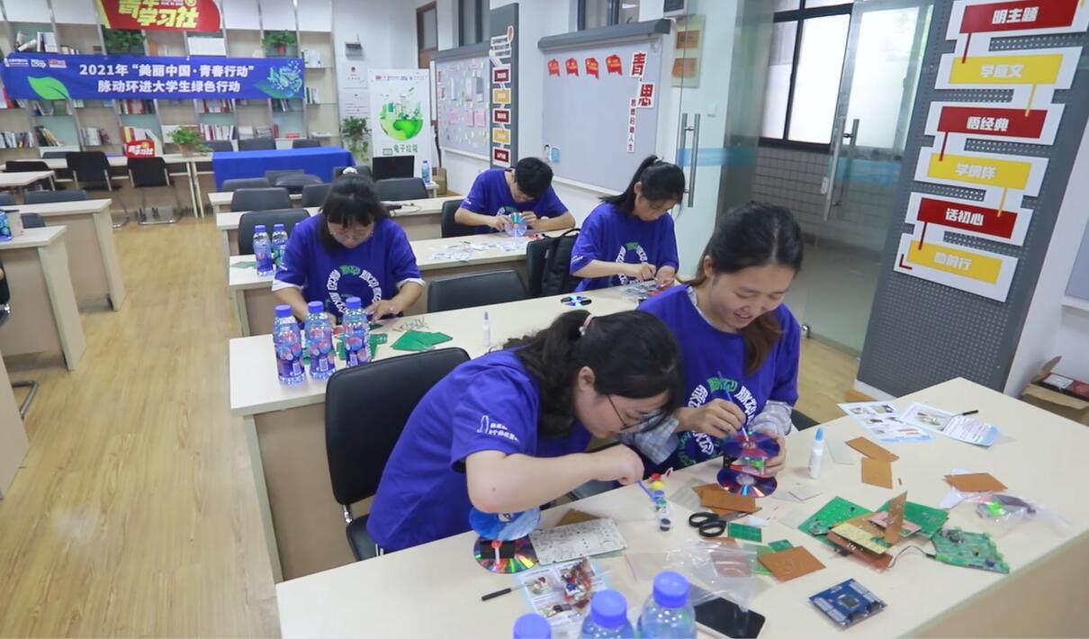 他们为什么要收集校园里的电子垃圾呢?这得益于一项由知行计划、达能中国饮料、中国光华科技基金会联合发起的“脉动环进大学生绿色行动”。据悉,该行动积极响应共青团中央“美丽中国·青春行动”号召,共支持全国15所高校大学生团队,围绕资源节约议题,开展“绿色工坊”及“绿色行动”,聚焦“大学校园绿色生活方式”,在提升大学生环境意识和绿色能力的同时,影响并带动更多公众,共同助力生态文明建设,推进绿色可持续发展,践行绿色生活方式,共建美丽中国。