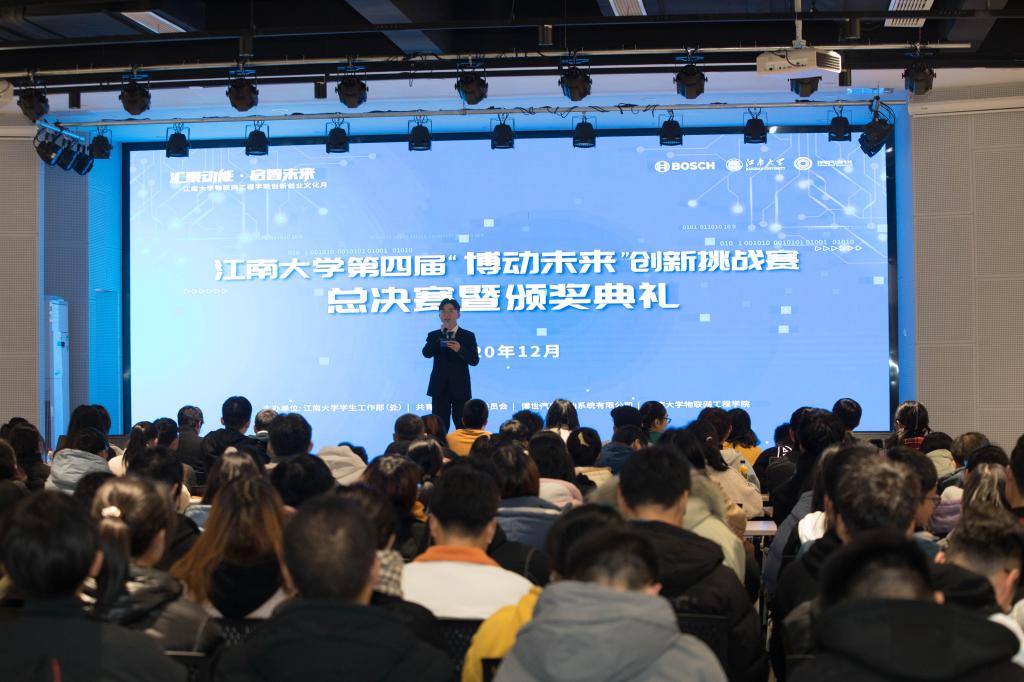 2020年12月11日,江南大学“博动未来”创新挑战赛总决赛暨颁奖典礼在北区大学生活动中心F105圆满落幕。博世汽车柴油系统有限公司喷射技术开发部总监王军华,博世汽车柴油系统有限公司新业务发展部总监董明哲,博世汽车柴油系统有限公司高级平台经理金鑫,Bet365国内网址入口
