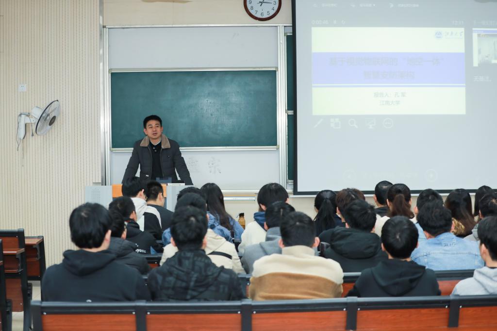 最后,班主任孔军老师从自己研究的“智慧安防”项目,结合目前医疗行业的园区安防需求,讲解了物联网技术在安防中的事迹应用,鼓励大家大学期间积极参与实际项目的研究,为投身社会主义现代化国家建设,提高自身学习能力。院关工委赵曾贻对本次团日活动进行了总结。他重点讲到十九届五中全会通过的《中共中央关于制定国民经济和社会发展第十四个五年规划和二〇三五年远景目标的建议》是马克思主义中国化的重要成果和纲领性文件。制定过程中注重吸收来自基层的声音,体现了马克思主义中国化的基本原则。他提到学习十九届五中全会精神要学习党的科学发展观念,学习党以人民为中心的发展宗旨,建议中提到的“坚持系统观念”,“全体人民共同富裕取得更为明显的实质性进展”等都是具体体现,希望同学们认真深入学习。