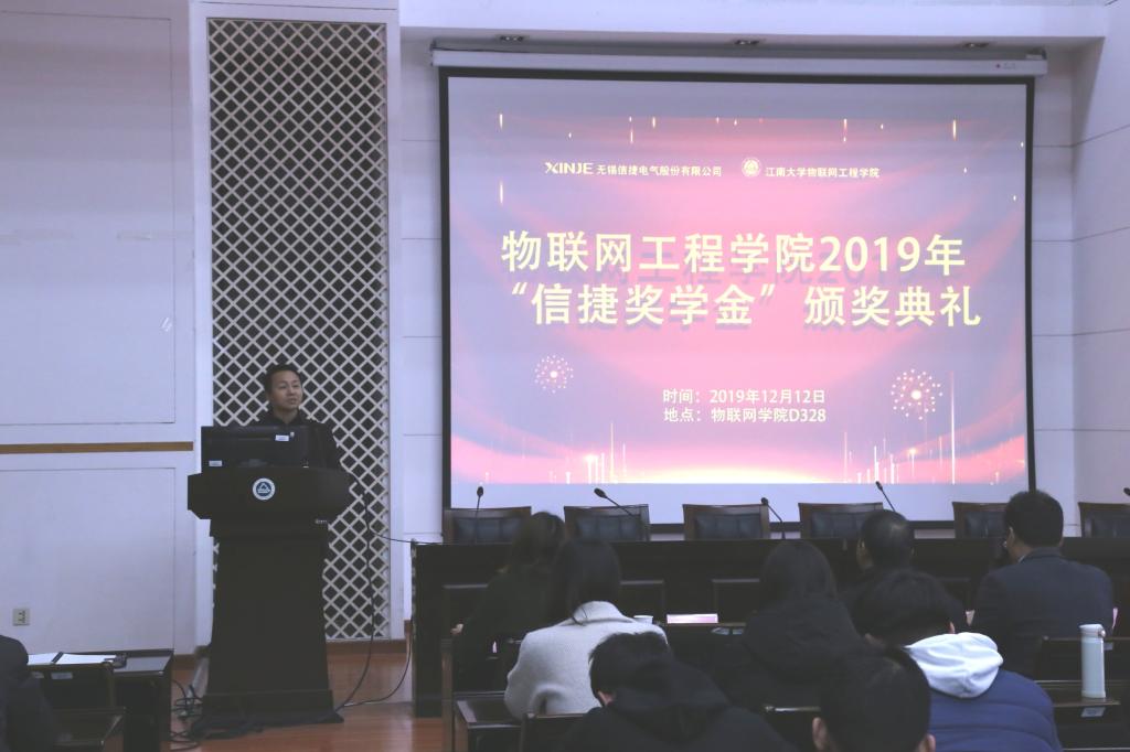 院长谢林柏、副书记副院长耿向阳、团委书记吴垚、团委副书记肖志勇,无锡信捷电气股份有限公司副总经理陈世恒、总经理助理冯予、校企经理王正堂、人力资源副经理张妍,获奖学生代表及学院2018、2019级130余名研究生参加。典礼由耿向阳主持。