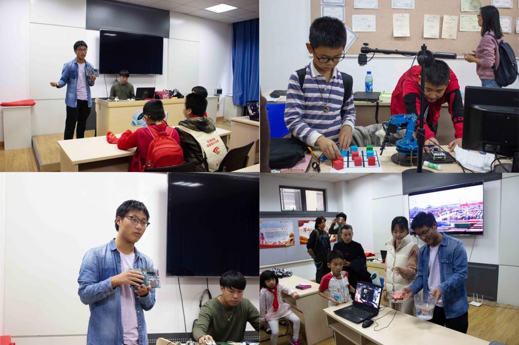 随后,全媒体小记者们在科协同学的带领下又依次参观了机器人俱乐部、智能车俱乐部、人工智能俱乐部,了解了我院优秀学子在国家级竞赛中斩获诸多大奖,欣赏了一系列我院大学生设计的智能车、机器人表演。“我一直都对机器人十分感兴趣,这次参观活动让我第一次真正见到了机器人,使我受益匪浅。”一位来自无锡市蠡湖中心小学的小记者如是说。