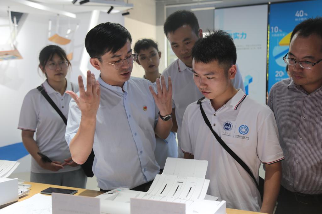 8月12日,调研团一行来到了江苏省物联网研究中心。该中心成立于2009年,依托中国科学院物联网研究所,主要致力于打造公共服务平台,对核心芯片与器件、车联网、智能装备、智能农业、教育培训等物联网应用进行研究并将新技术推向市场。在这里,调研团详细了解了一系列物联网产业发展的重要历程,并深入了解了物联网技术应用的情况。其中,同样从大学生创业团队发展起来的智能分拣“恺韵来机器人”公司,引起了调研团的极大兴趣,目前该机器人强大的智能分拣能力已实现每机每小时分拣300-600件快递,准确率经测试超过99.99%,并已成熟应用到无锡物流产业。