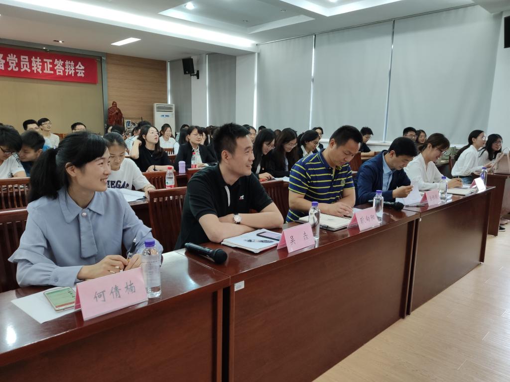 2019年上半年,学院共有41名同志预备期满,其中毕业班党员24名,学院特别安排了毕业生专场转正答辩会。答辩会包括学生汇报展示和提问两个环节。24名预备党员从自己在预备期中的思想、工作、学习以及不足之处等方面作了汇报。在思想上,预备党员始终以马克思主义武装自己,积极学习习近平总书记系列重要讲话,认真研读党章党史,不断提升自己的思想觉悟。在工作学习中,预备党员同志们孜孜不倦,用知识武装自己,为肩负中华民族伟大复兴夯实基础。对答辩老师的提出的涉及党的十九大精神、习近平总书记对青年人的希望等时政热点问题,他们都对答如流。答辩老师也根据学生学业成绩、宿舍卫生情况,综合素质等方面进行考量,从党性觉悟、理论学习以及先锋模范作用的发挥等方面进行了点评和鼓励。