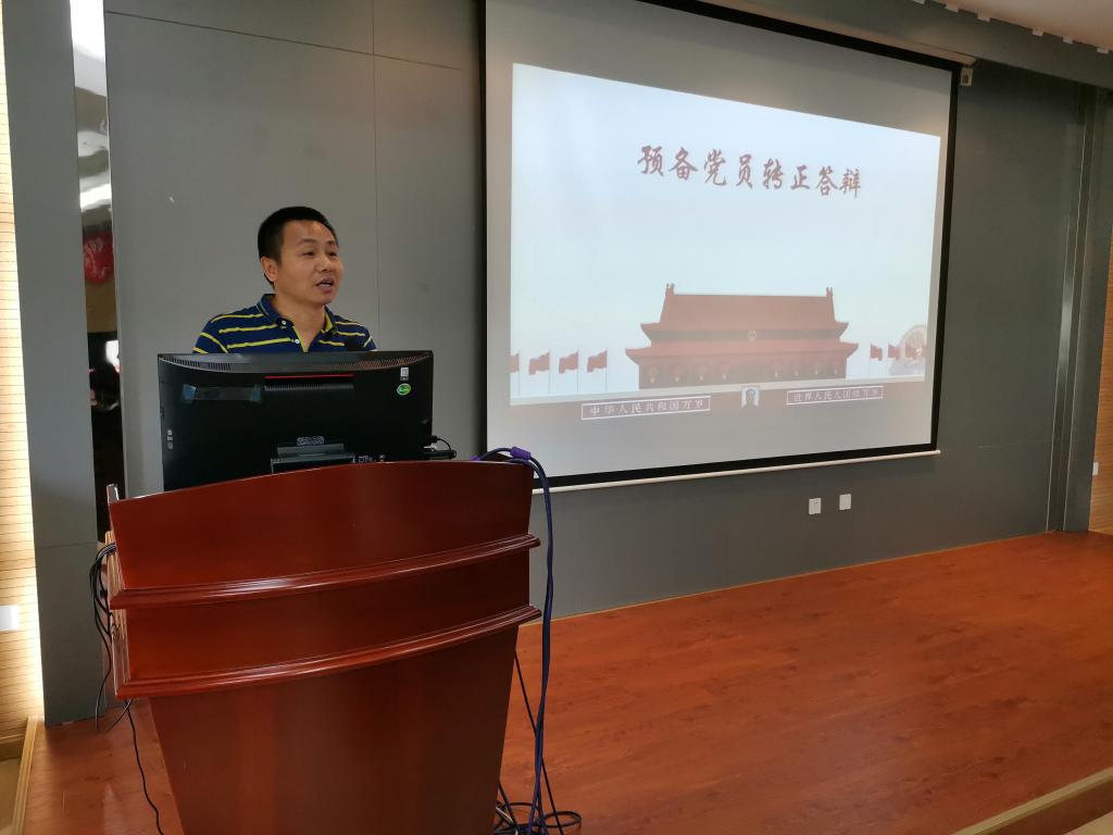 最后,耿书记希望大家要始终以党员的标准严格要求自己,要继续努力学习党的基本理论知识、专业知识和传统文化知识,不断提高自己的综合素质;要不断创新,勇于担当,背负起新时代赋予我们的历史使命。通过转正答辩,预备党员们再次重温了党章、党规及习近平总书记的重要讲话精神,认真回顾了一年来自己在思想上和行动上的转变和进步,进一步夯实了理论基础,提高了思想觉悟。