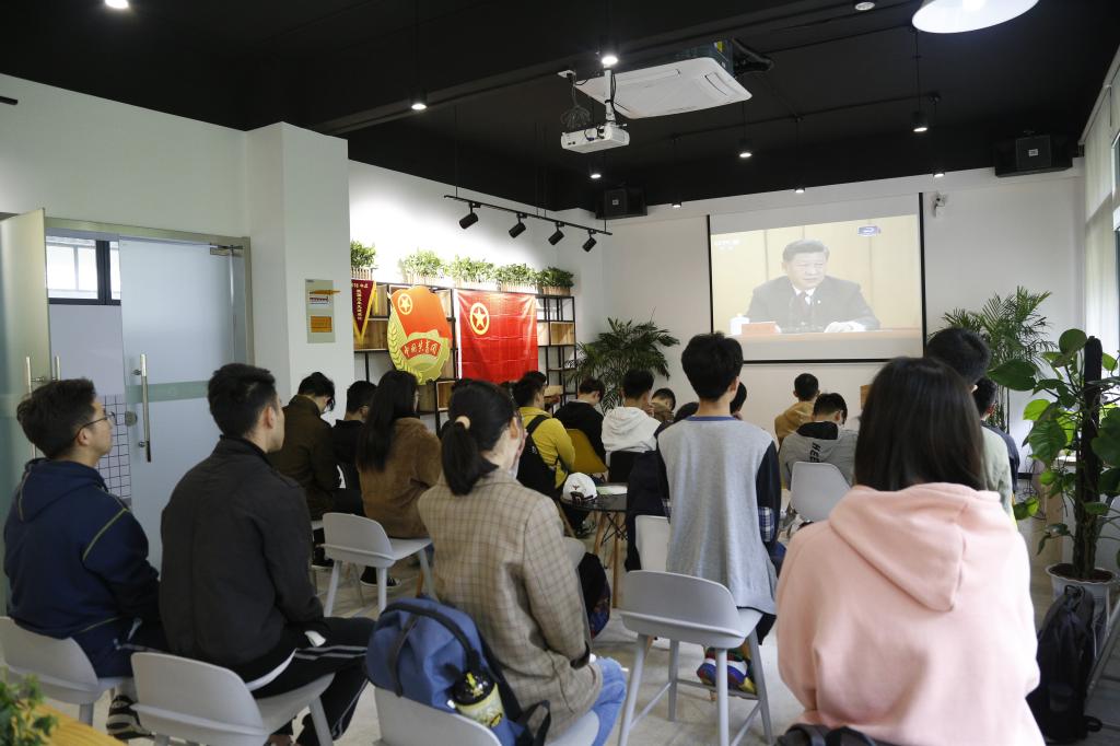 高度重视,积极组织学院党政、分团委、党支部、团支部及师生代表在会议室、办公室、教工之家、实验室、宿舍等场所共同观看了网络直播。