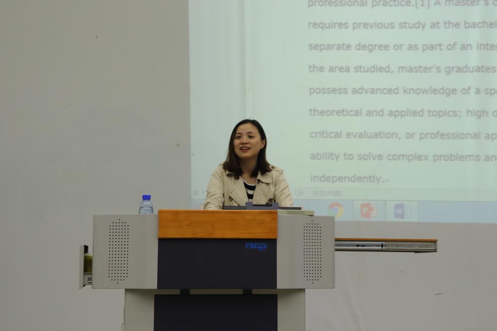 随后,Grace让大家撕掉思维导图,点明其中的玄机。她认为,一个人在大学期间必须学会做人生规划,但也要有撕毁反对声音和持续规划的力量。只有这样,才能“做一个不普通的人”。Grace进而又落归实处,阐述和分析了国内外考研的相关问题。她说道,在国内,作为考研面试官遇到的最频繁的问题是“中式翻译”和语法错误,提醒大家加强此方面的训练;而在国外学习生活,则需要承受更大的学业压力、经济压力和面对生活中无处不在的语言问题。