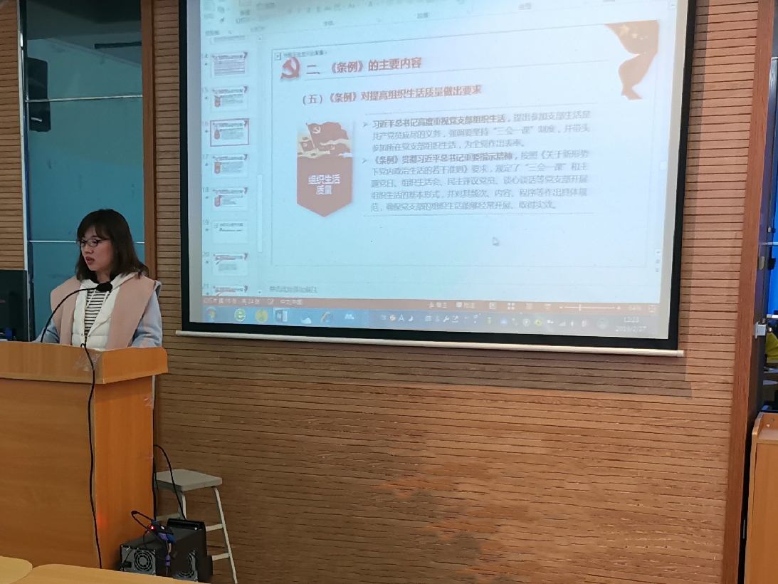 会上,赵丽敏老师领学了《中国共产党支部工作条例(试行)》。会议强调,要充分认清《条例》制定和实施的重大意义。《条例》的制定和实施,对于加强党的组织体系建设,推动全面从严治党向基层延伸,全面提升党支部组织力,强化党支部政治功能,巩固党长期执政和组织基础,具有十分重要的意义。要切实高度重视,提高政治站位,认真抓好贯彻落实。会议要求,支部委员要带头学,要在所在党支部通过上党课、讨论与答题竞赛等形式,组织全体党员认真学习领会、弄懂内容、把握要求,全面提升支部组织力,推动支部工作提质增效,不断迈向新台阶,全面推进党支部工作标准化建设,以条例进一步规范支部各项工作,提升全面从严治党的认识,提升党支部建设重要性的认识,增强贯彻执行《条例》的思想自觉和行动自觉。
