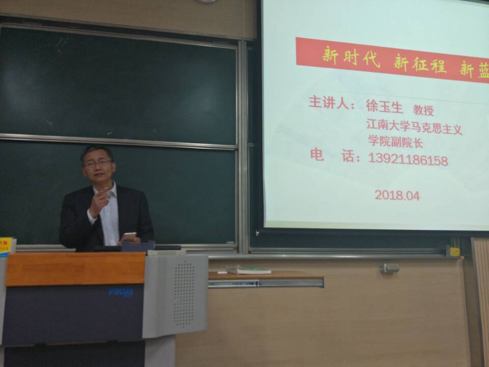 党课培训第二讲在第一教学楼1A105教室顺利举行,由马克思主义学院副院长徐玉生教授主讲。培训班全体成员在徐教授的讲解下,认真学习了中国特色社会主义的“新时代、新征程、新蓝图”,进一步地了解了党的执政现状以及所面临的挑战。