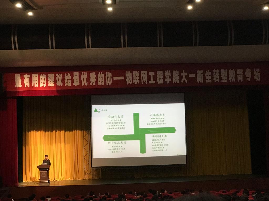 活动伊始,学院分团委书记吴垚老师致辞。吴老师以囊萤映雪、悬梁刺股的故事坚定了同学们珍惜时光,刻苦学习的信念。接下来,进行分享环节,首先发言的是林浩文同学,他不仅是国家奖学金的获得者,在科创方面更是突出,曾经荣获全国高等数学竞赛一等奖,全国电子设计大赛一等奖,“博世杯”江南大学程序设计竞赛金奖,获得国家级大创立项等多种奖项。他主要向大家介绍了科创方面的经验,如各类科创计划的差别,如何寻找课题方向,如何着手推进项目实施等等。他告诫同学们不要沉迷于游戏,把握好专业方向,打好基础方为正道。