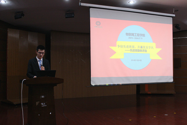 活动伊始,学院党委副书记、副院长耿向阳老师致辞。耿向阳副书记强调,优良的学风,于一所高校来说是实现科学研究、社会服务和文化传承创新功能的根本保证;于一个班集体来说,优良的学风是原动力,是约束力,是凝聚力;于每一位同学来说,不仅是优良学风的直接营造者,更是优良学风最大受益者。接着,主持人简要介绍评选规则,各班进入班级展示环节:自动化1503班“老炮说事”的脱口秀,通信1502班《在蠡湖大道的日子》原创歌曲,电气1401班科创成果现场演示,各参赛班级各显身手,别出心裁,赢得了观众的阵阵掌声。各班展示环节结束后,谢东延同学以一首优美的《月半小夜曲》再次掀起了活动的高潮。伴着热烈的掌声,学院分团委书记胡娟老师对各班的展示做出精彩的点评,并提出了对同学们的殷切希望。活动最后,各位嘉宾为获奖班级颁发奖品。
