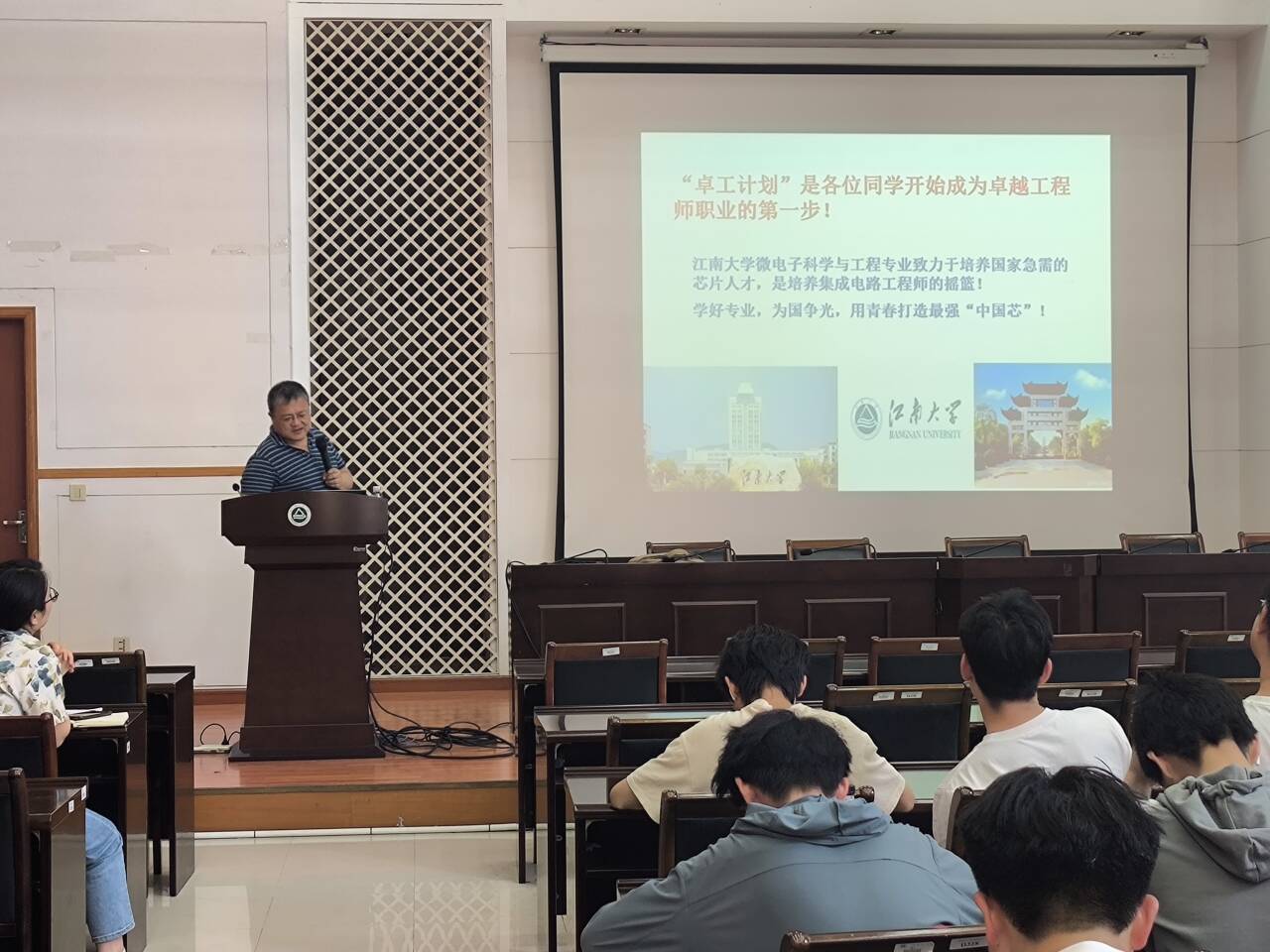 为满足国家重大战略需求,培养造就一大批创新能力强、适应经济社会发展需要的高质量技术人才,进一步促进学生对“卓工计划”的认识和了解。5月17日下午,2021级微电子科学与工程专业“卓越工程师教育培养计划”宣讲会在学院D328举办,集成电路学院党委书记耿向阳、姜岩峰教授、于平平教授出席会议并主讲。活动由辅导员沈滔主持。