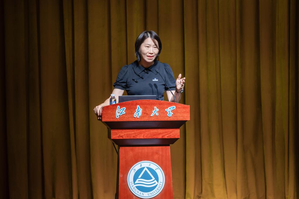 典礼结束后,本学期“听·院长说”系列活动正式开讲,院长栾小丽作《奋进成就未来》专题分享。她以学校的历史沿革为切入点,将学院在人才培养、专业建设、学科发展、师资队伍、科研平台等方面取得的成就进行全面介绍,在座新生直观感受了长期以来物联师生员工凝心聚力、艰苦奋斗所留下的铿锵足音。她指出,站在新起点上,新一代的物联学子应勇担使命,将满腔热血与青春朝气注入学院发展的强劲脉搏中,奋力在青春的赛道上,展现江南物联人最为辉煌的成就与风采!