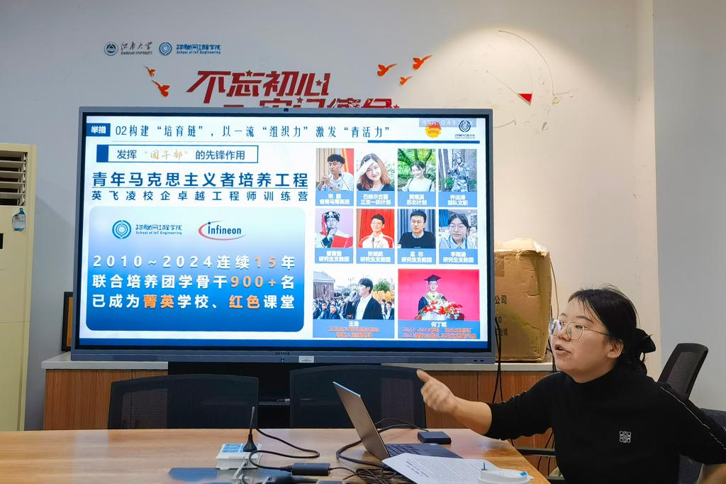 本期由学工办主任兼分团委书记洪筱和本科生辅导员李灿进行主题分享。洪筱对标共青团工作“三力一度”的衡量指标和评价维度,围绕筑牢“政治链”、构建“培育链”、关切“需求链”、延伸“价值链”四个层面,对学院团学工作的思路、品牌、成果和思考进行了全面梳理和分析。她提到,团学工作推进 “三力一度”,要扎根“四链”,平衡顶层设计与基层创新,整合多元资源,精准聚焦学生发展痛点与社会需求热点,构建全方位育人体系,将宏大理念细化为可操作、可评估的项目活动,持续优化反馈机制,方能使团学工作深度赋能学生成长,铸就坚实人才培养堡垒。她表示,下一阶段将聚焦高水平学科竞赛、高质量社会实践品牌、高水平服务育人项目持续发力,让学院共青团工作再上一个台阶。