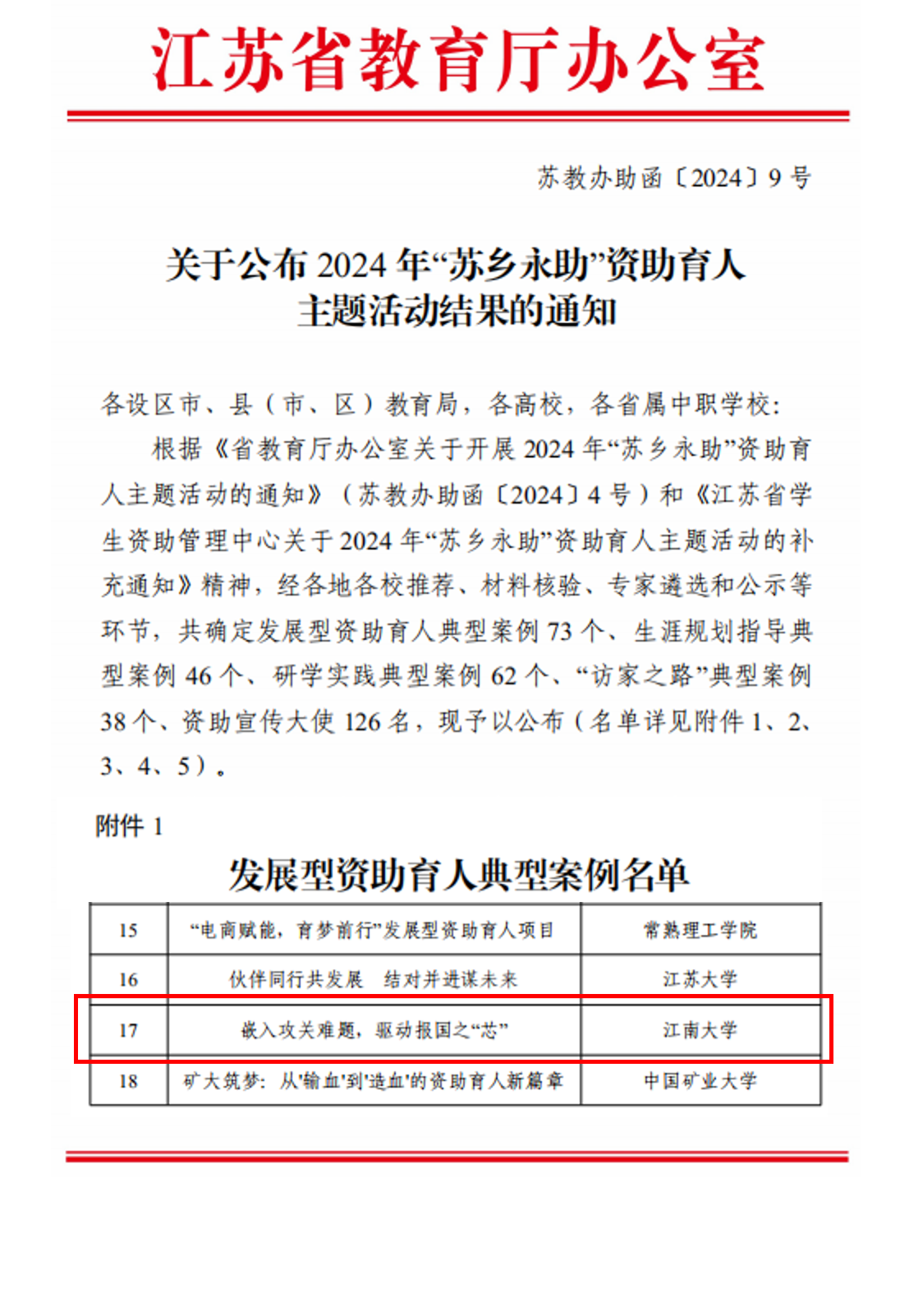日前,江苏省教育厅组织开展的2024年“苏乡永助”资助育人主题活动评选结果公布,Bet365国内网址