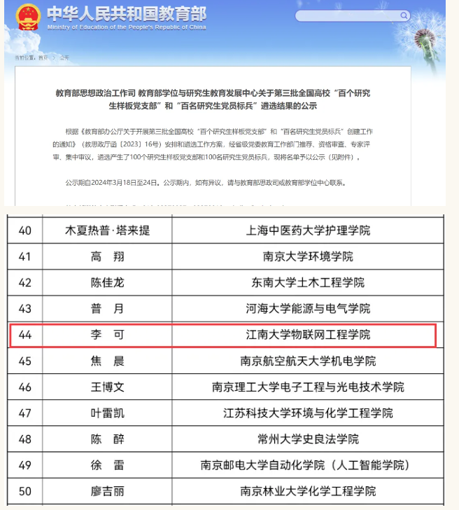 控制科学与工程专业2021级博士研究生李可成功入选,为此次评选中江南大学唯一入选学生。