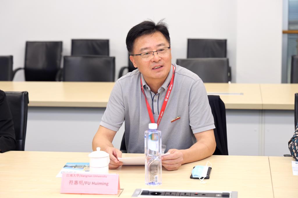 符惠明代表学校对博世公司长期以来给予学校事业发展的支持和对校友的培养表示感谢,他回顾了学校与博世公司在人才培养、科学研究和就业育人等方面校企合作的主要成果,并介绍了学校近年来在学科建设、科学研究及学生就业创业方面取得的成绩。他指出,江南大学与博世动力总成有限公司同在无锡,有能力、有责任、有义务为服务社会经济发展贡献更多的力量。学校的优势学科专业领域与博世动力总成重点发展产业有着高度的契合,双方合作前景广阔。希望博世旗下各个企业提供更多优质岗位招聘学校优秀毕业生,架起校企合作的人才桥梁、情感桥梁,共同推动无锡市相关产业高质量发展。