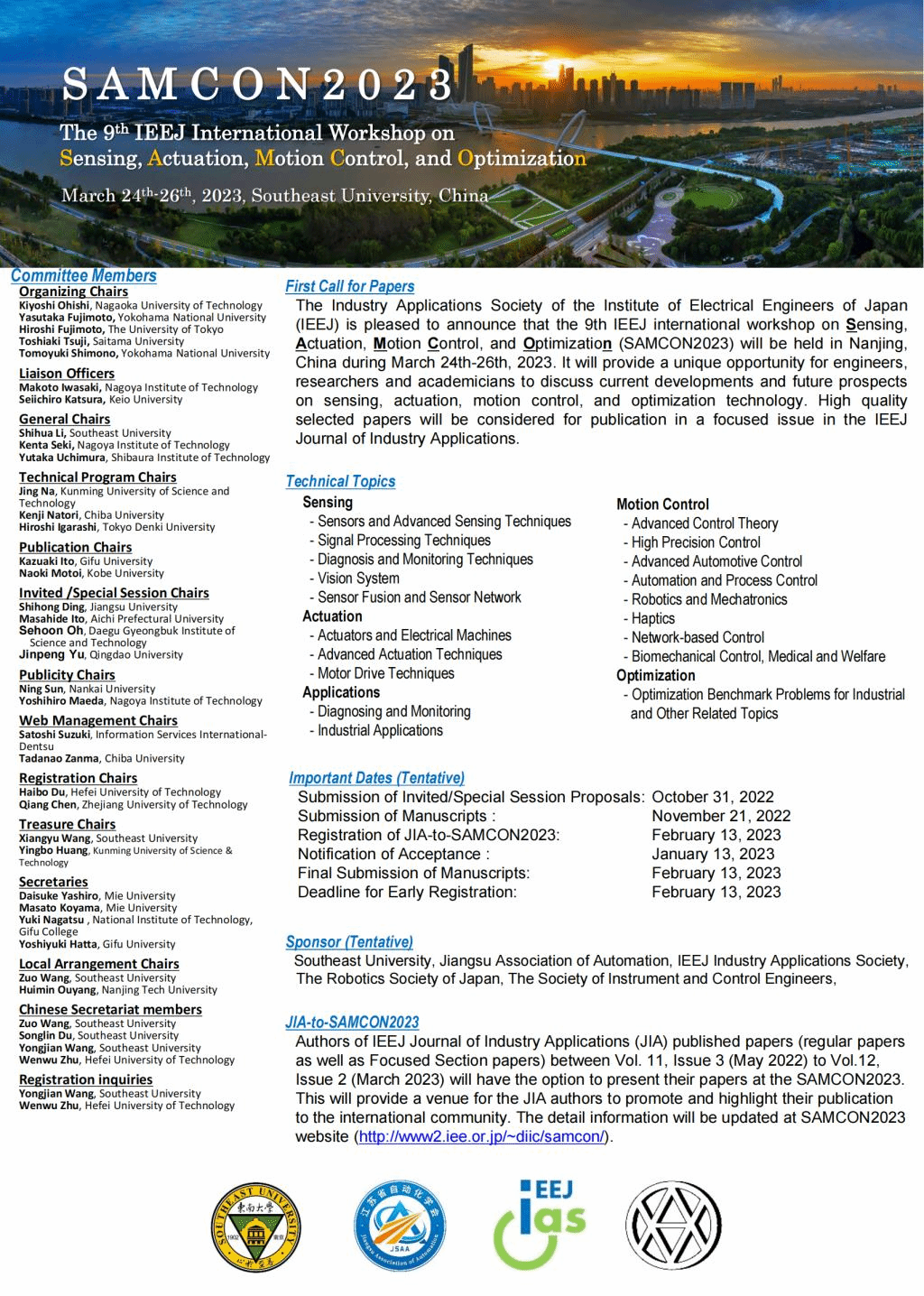 The 9th IEEJ International Workshop on Sensing, Actuation, Motion Control, and Optimization