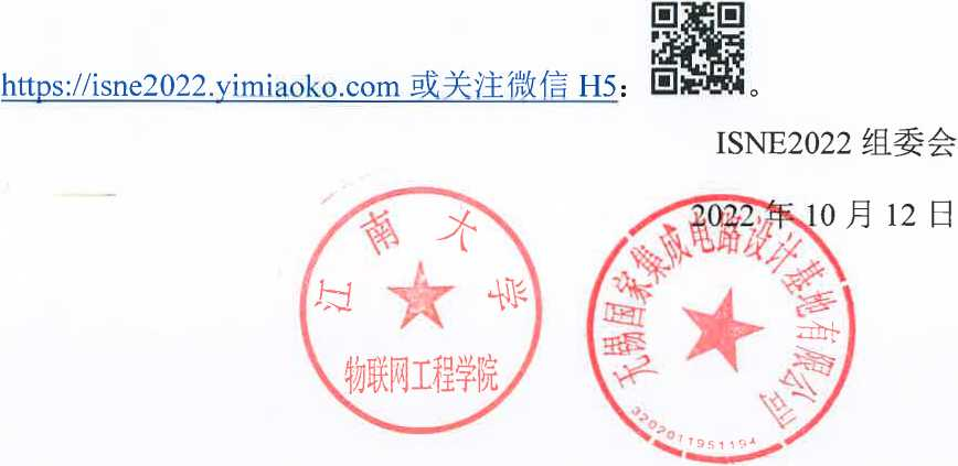 为配合举办地疫情防控需要,最大限度确保广大展商、参会人员的健康安全,保证学术会议与产业论坛的规模和质量,组委会慎重考虑决定:将原定于20221021-23日在新湖铂尔曼酒店举办的第十届下一代电子国际学术会议(ISNE2022)暨第一届无锡集成电路产研融合发展论坛延期至2022129-11日举办,地点不变。