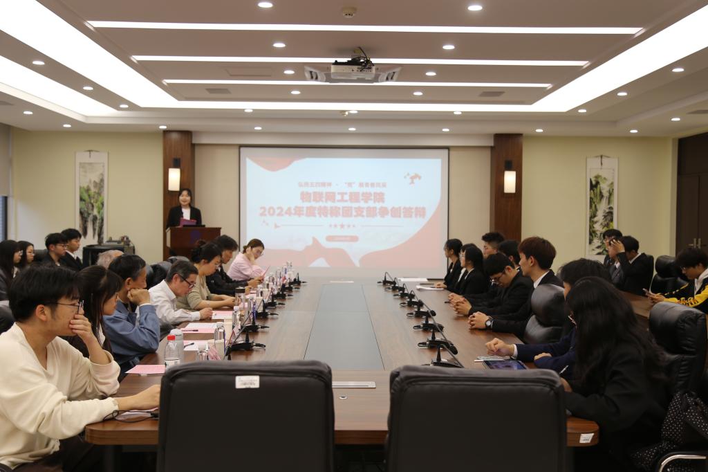 各团支部根据抽签顺序依次风采展示、现场答辩。分别围绕思想引领、组织建设、学风建设、特色工作、未来展望等维度汇报支部的建设情况。各支部充分发挥专业优势,深入常州三杰纪念馆,用最火的方式讲述红色故事;通过情景式、互动式、创新式的科普志愿活动,在青少年中播撒科技创新的种子。图文并茂、重点突出、条理清晰,展示了各团支部的独特魅力和风采。现场评委结合展示内容进行现场提问,各团支部书记以出色的应变能力、良好的口头表达,赢得了阵阵掌声。经过激烈的角逐,物联网2303团支部、自动化2305团支部、电气2302团支部、微电子2303团支部脱颖而出,成功获评“瞿秋白”特称团支部、“蛟龙号”特称团支部、“雷锋”特称团支部和“远望号”特称团支部称号。